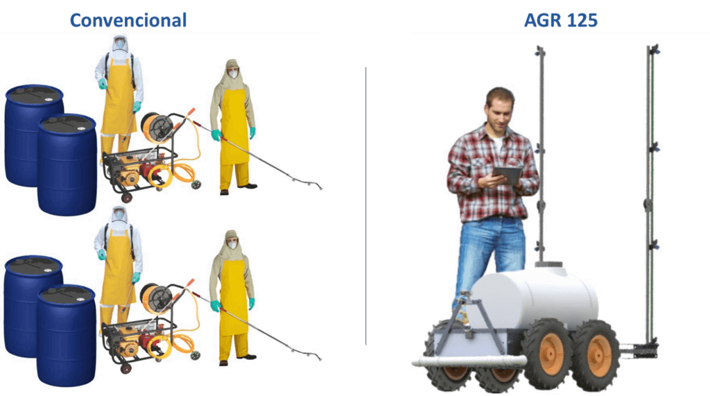 Operação automática, versatilidade, sistema de pulverização altamente preciso e eficiente. Com isso o AGR 125 gera economia com defensivos, insumos e mão de obra. Além disso o AGR 125 exige menos manutenção por sua simplicidade mecânica facilitada por motorização elétrica.